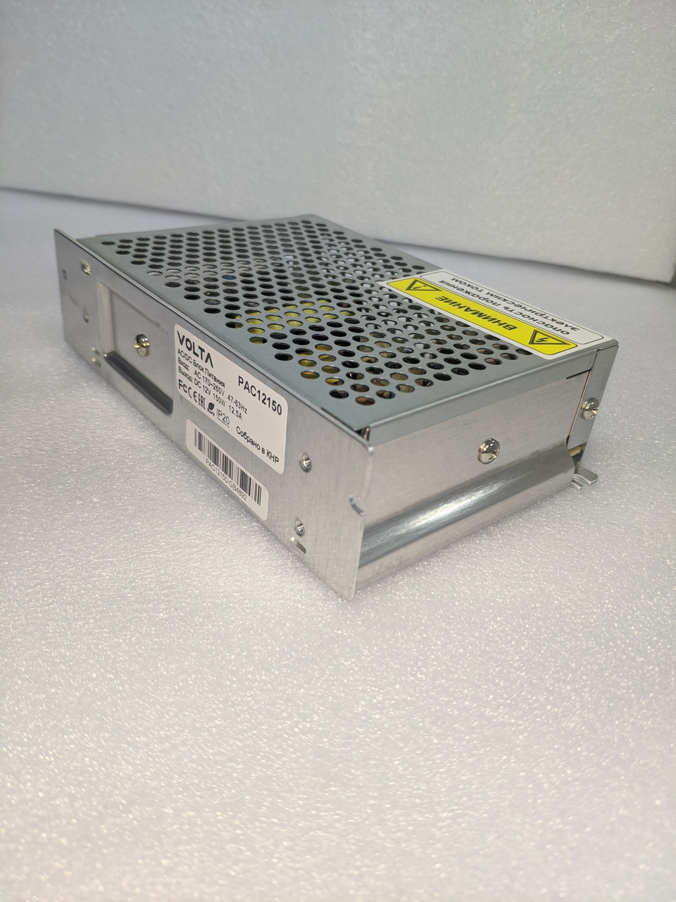 Входное напряжение 100-240V~50/60Hz, выходное напряжение 12V 12.5A. Металлический корпус, 4 выходных контакта (2 плюса и 2 минуса), заземление